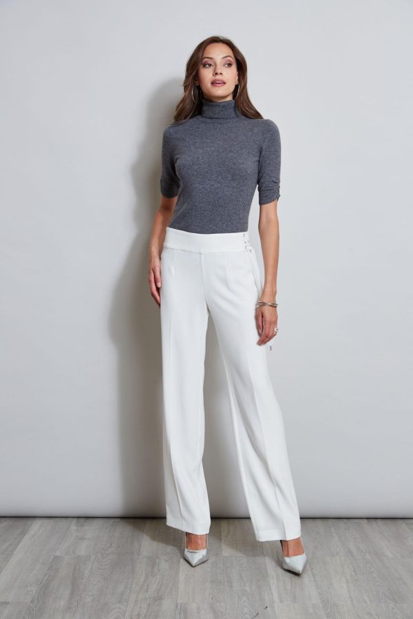 Meet the pant of the season! Our Fluid wide leg Crepe Pant has a modern yoke waist detailed with a soft chiffon side tie. Worn with a blazer or with one of Elie’s must have silk shirts, it is the perfect pant addition to your wardrobe.