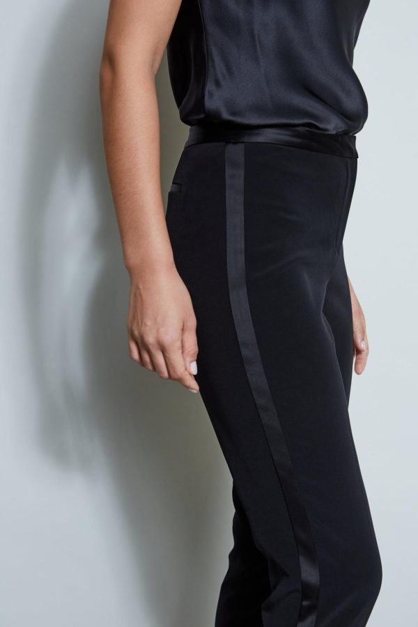 - Slim Fit Satin Back Crepe Dress Pant with Satin Side Stripes