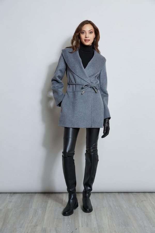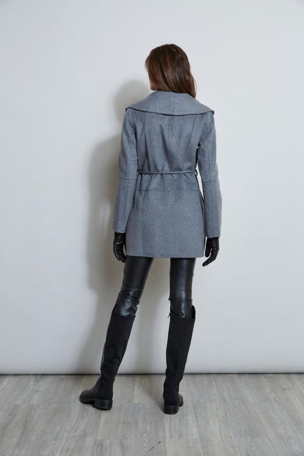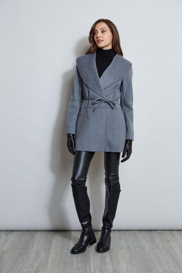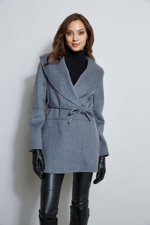 - Tahari Mid-Length Wool Blend Coat with Self Rope Belt & Shawl Collar