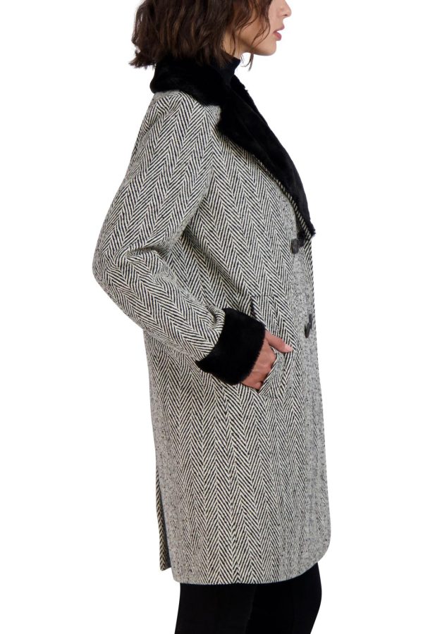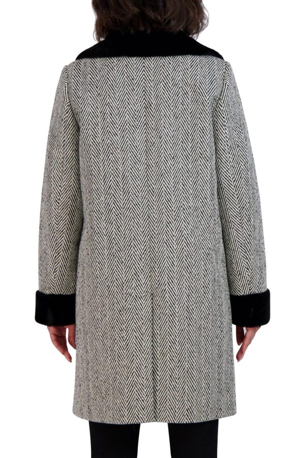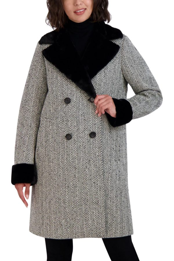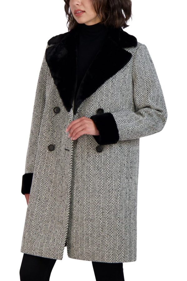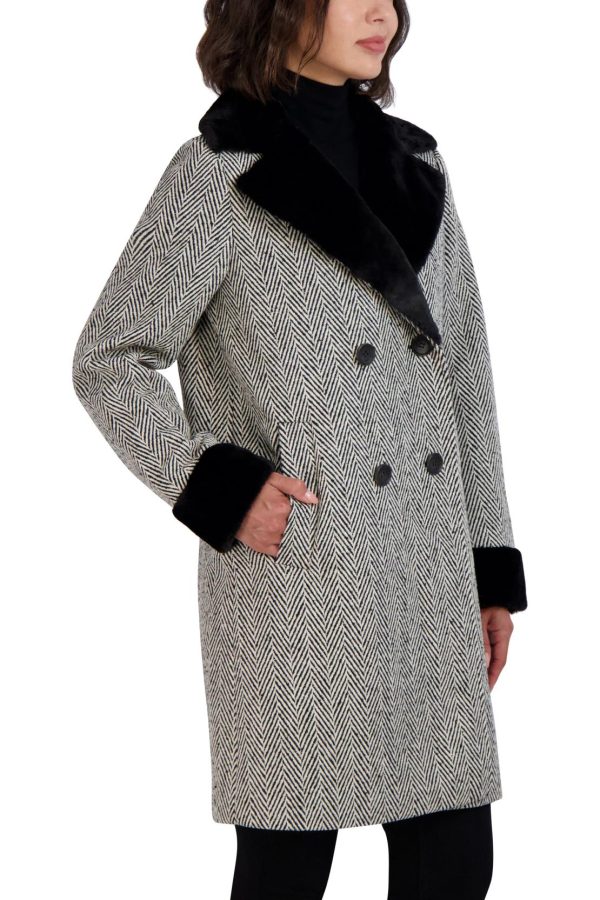 Women Coats | Elie Tahari Tahari Herringbone Shearling Double Breasted Coat Blk/wht