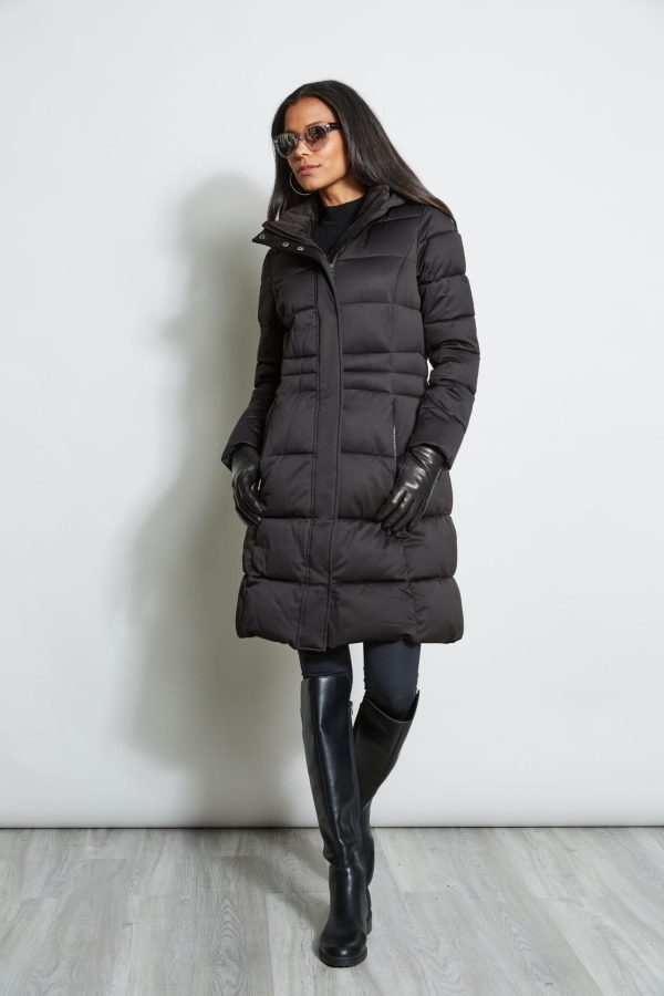 - Mid Length Puffer Coat with Stitching Detail & Side Pockets