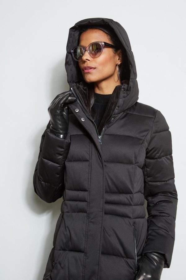 Meet the perfect puffer coat for when the temperature drops. Designed in a sleek silhouette with slimming lines, the channel stitching at the waist make this puffer coat figure flattering & functional. Designed to hit above your knees with a zip closure & side pockets, this coat will quickly become a cold weather staple.