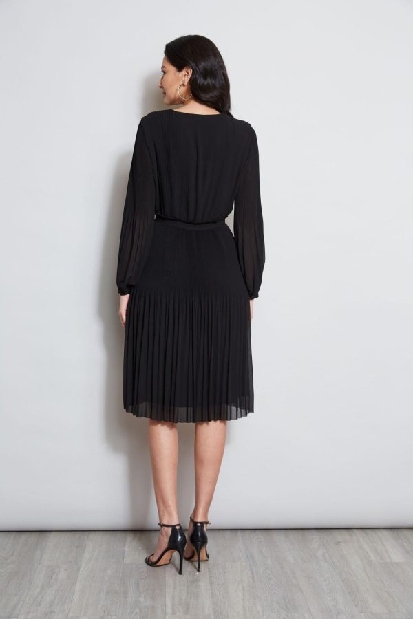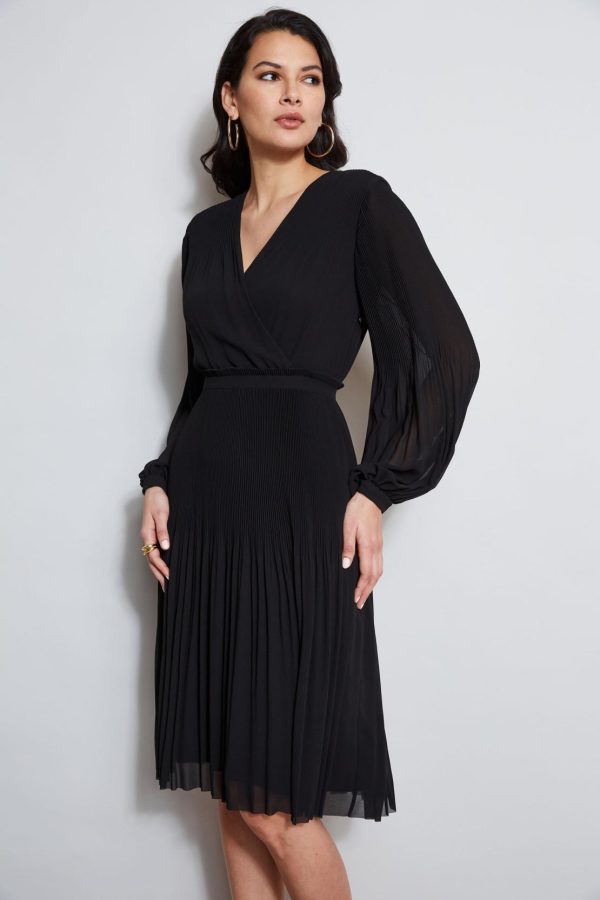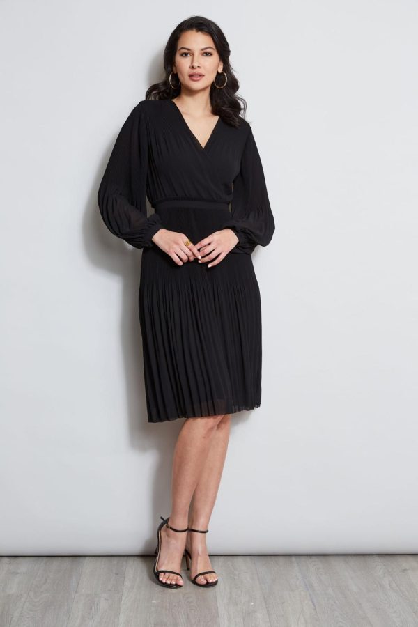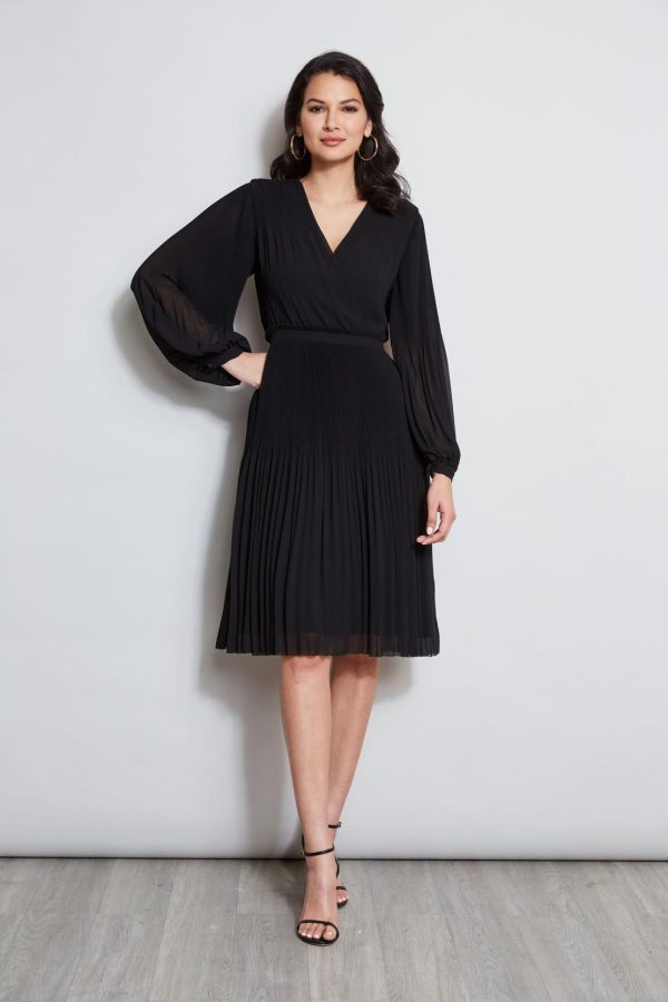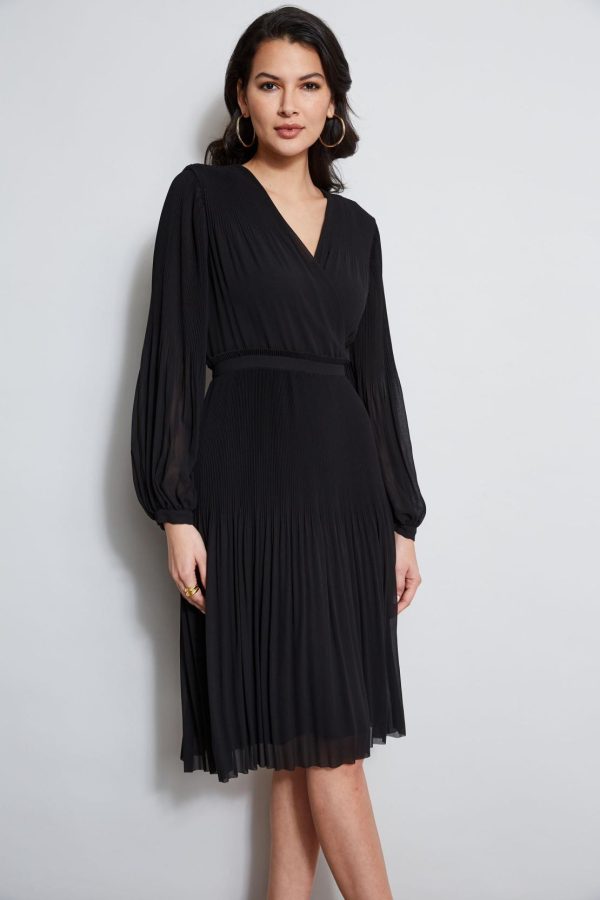 The easiest seasonless dress is elevated with blouson sleeves & pleating throughout. Designed with a faux wrap bodice, long sleeves and a fitted waist, our effortless Pleated Dress practically floats with movement.