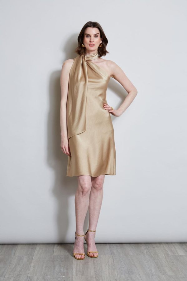 Chic and of the moment, our one shoulder dress features a romantic scarf detail that adds the glam factor to our favorite Satin. Dress it up with your favorite earrings & strappy sandals.
