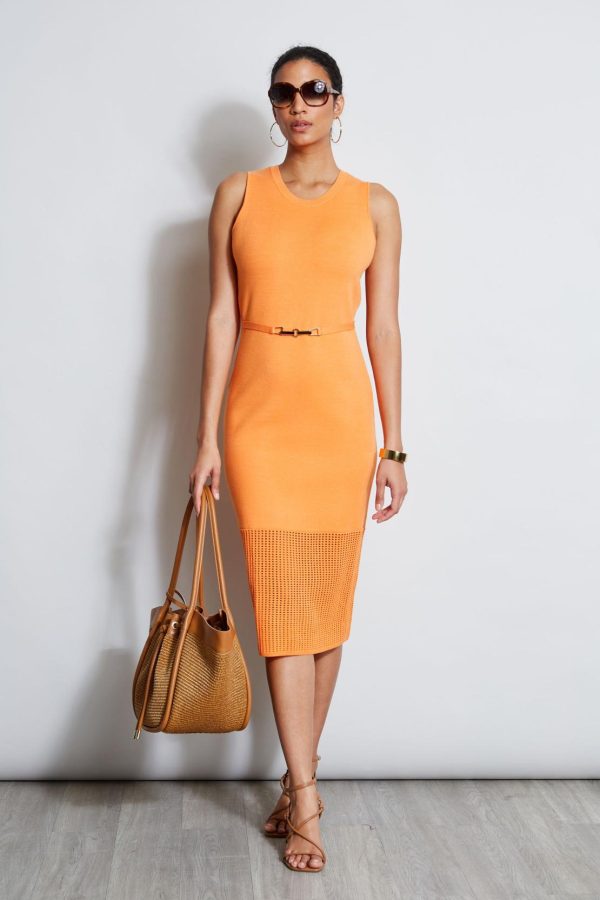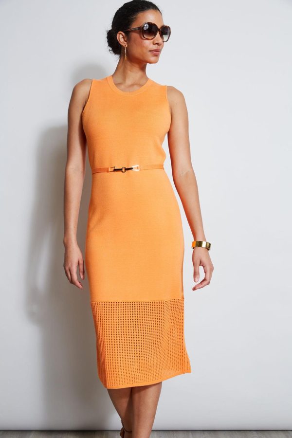 - Sleeveless Sweater Knit Midi Dress with Self Belt