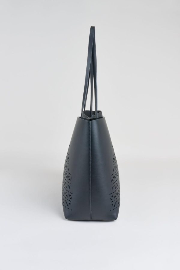 Prepare to be captivated by the chic, contemporary laser cut design of our exclusive Tote bag. Made in Italy in a luxe Napa Leather, it effortlessly blends style and function. The spacious interior ensures you can carry all your essentials with ease, while the interior removable pouch adds functionality – ideal for work, travel, or leisure.