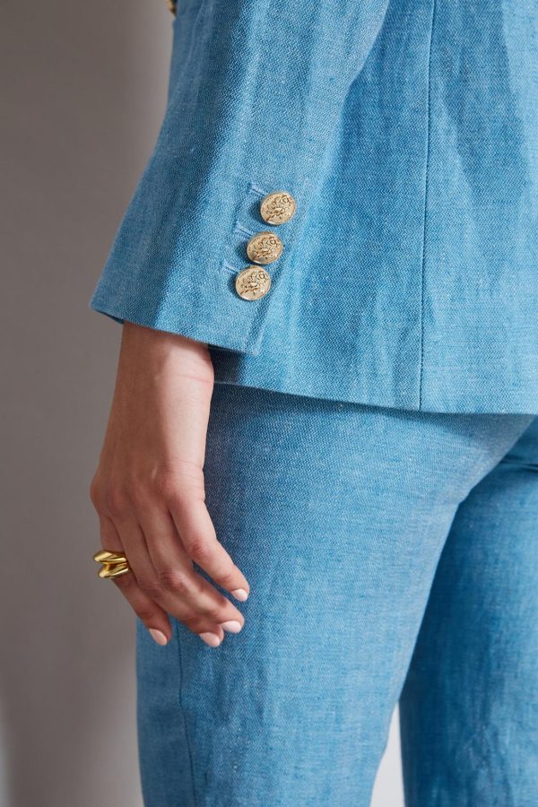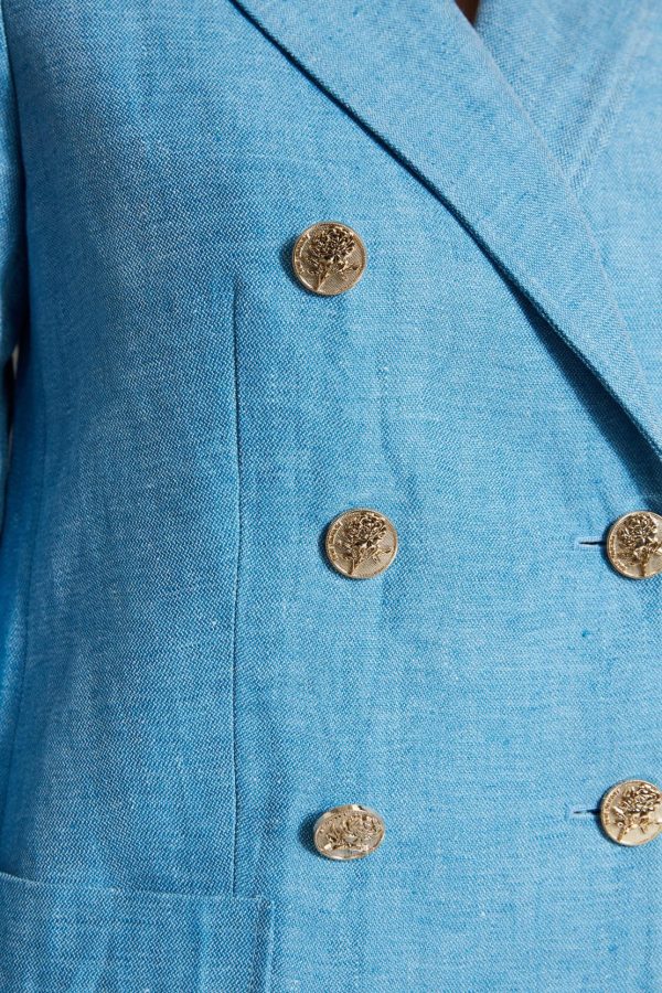 - Double Breasted Linen Blazer with Standout Gold Buttons