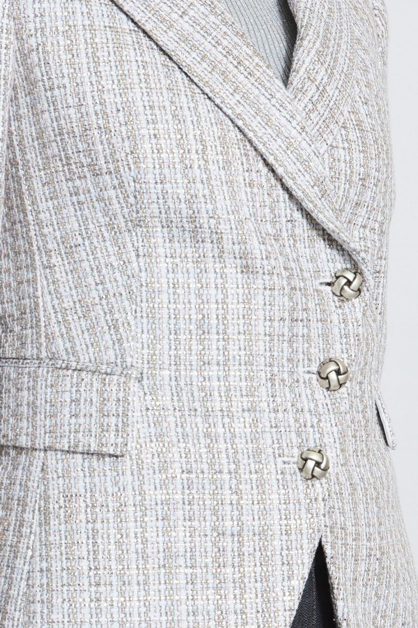 - Three Button Asymmetrical Double Breasted Italian Metallic Kissed Tweed Blazer