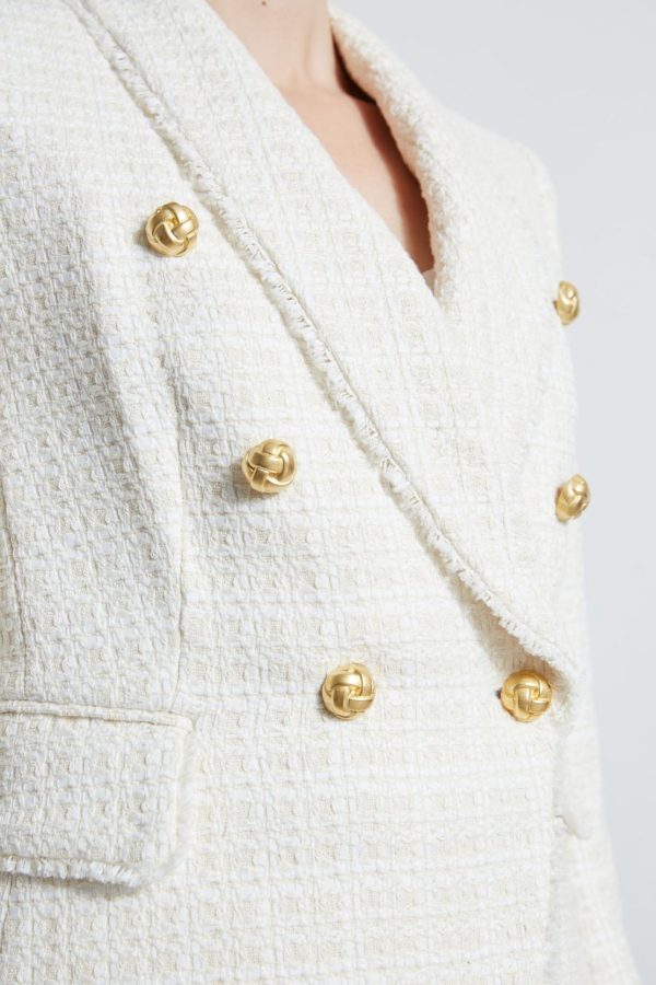 - Double Breasted Tweed Blazer with Fringe Detailing