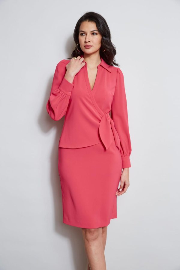 Our Mock Wrap Waist Tie Dress has a modern femme vibe in our lightweight Crepe. This dress adds new expression to Spring ‘s shirtdress trend, working overtime in your closet day to dinner.