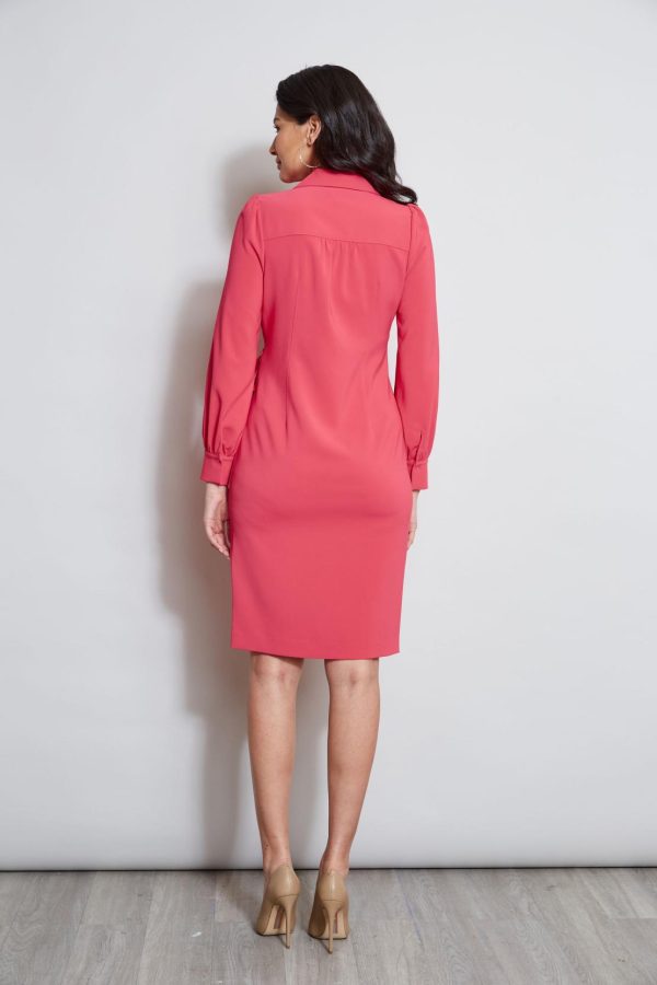 - Long Sleeve Crepe Dress with Side Tie Twist, Shirt Collar & Asymmetric Button Bodice