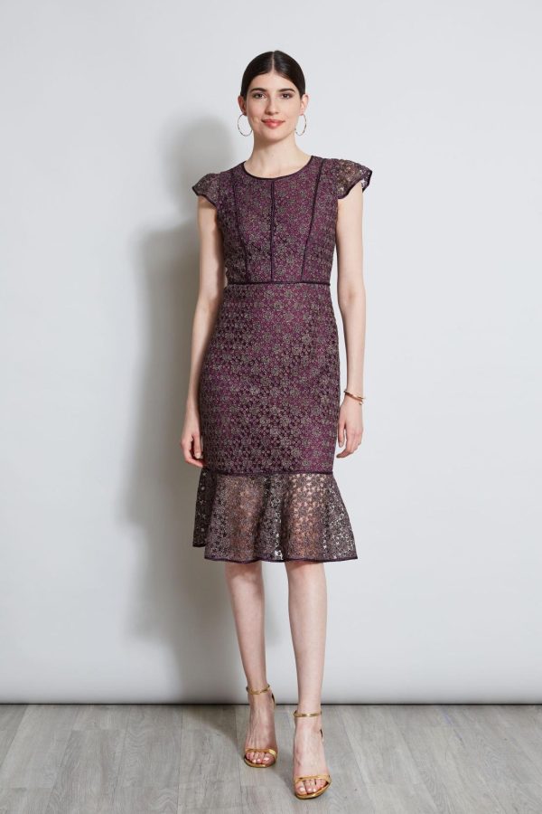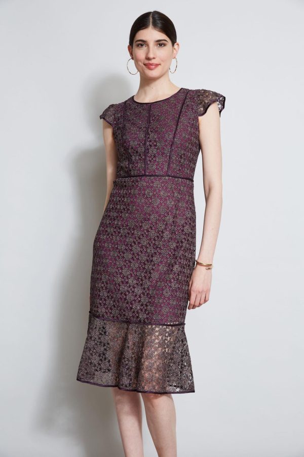 Women Midi Dresses | Elie Tahari Lace Flutter Sleeve Dress Plum