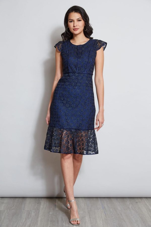 Women Midi Dresses | Elie Tahari Lace Flutter Sleeve Dress Twilight