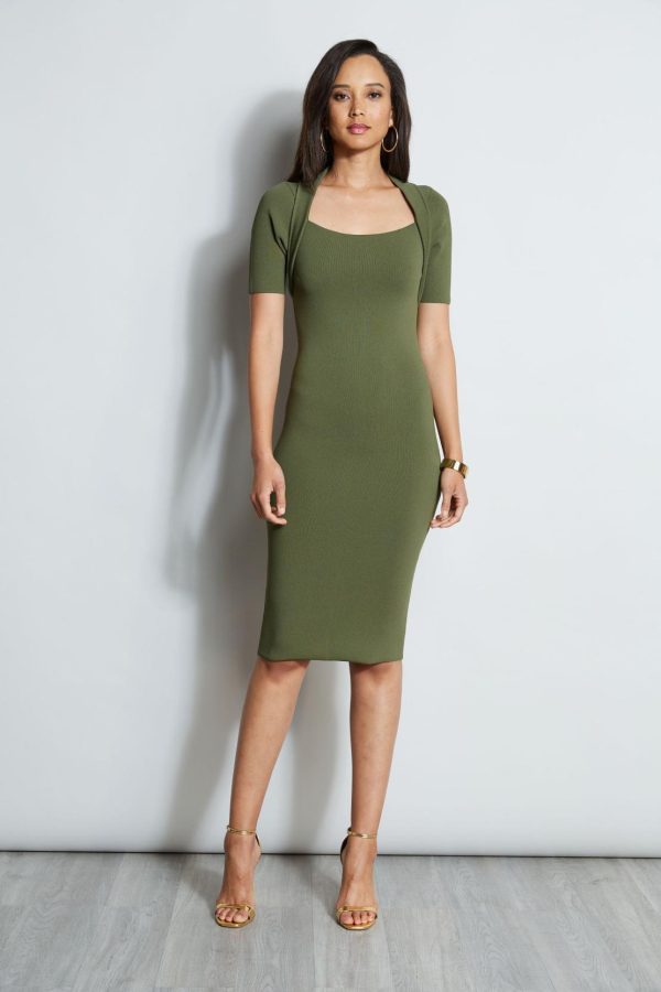 - Heavyweight Short Sleeve Bodycon Contour Neck Knit Dress