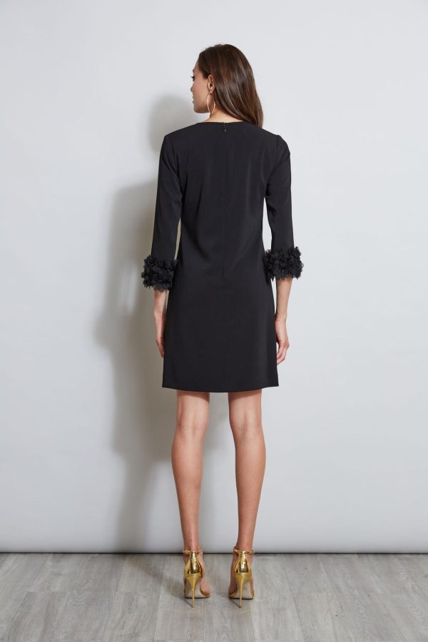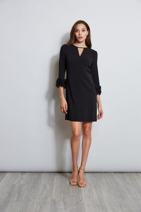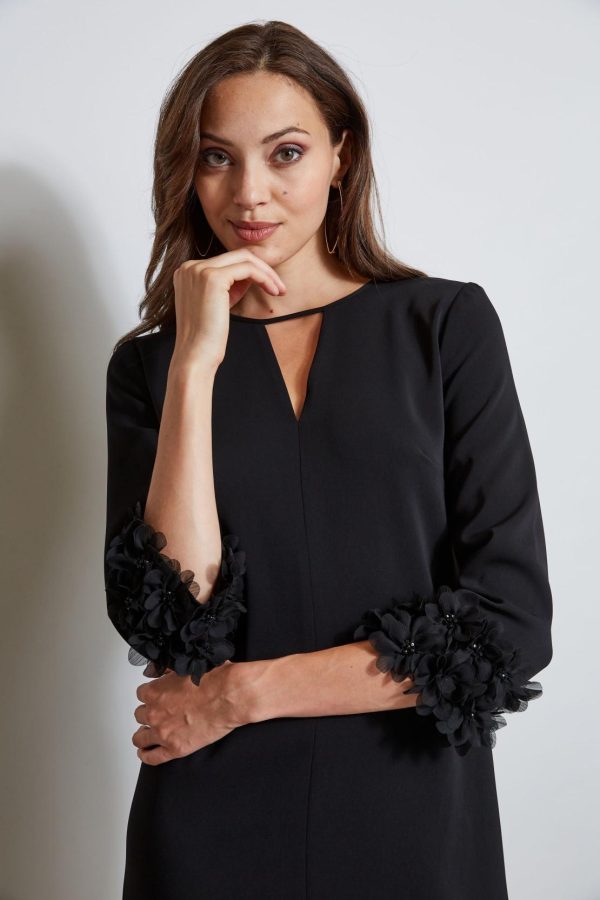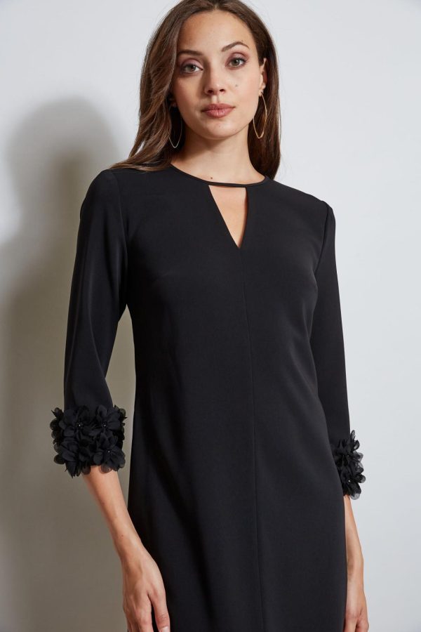 - 3/4 Sleeve Shift Dress with Flower Applique Cuffs & Keyhole