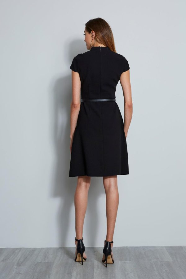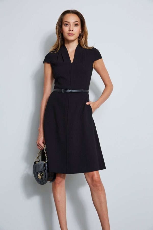 - Fit & Flare Fluid Crepe Short Sleeve Belted Dress
