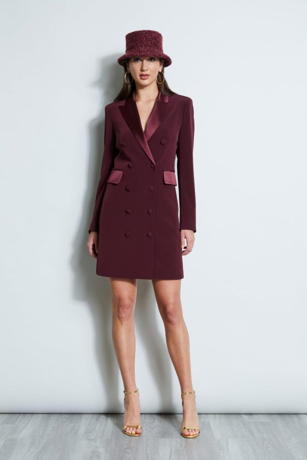 Women Short Dresses | Elie Tahari Satin Tuxedo Coat Dress Cordovan