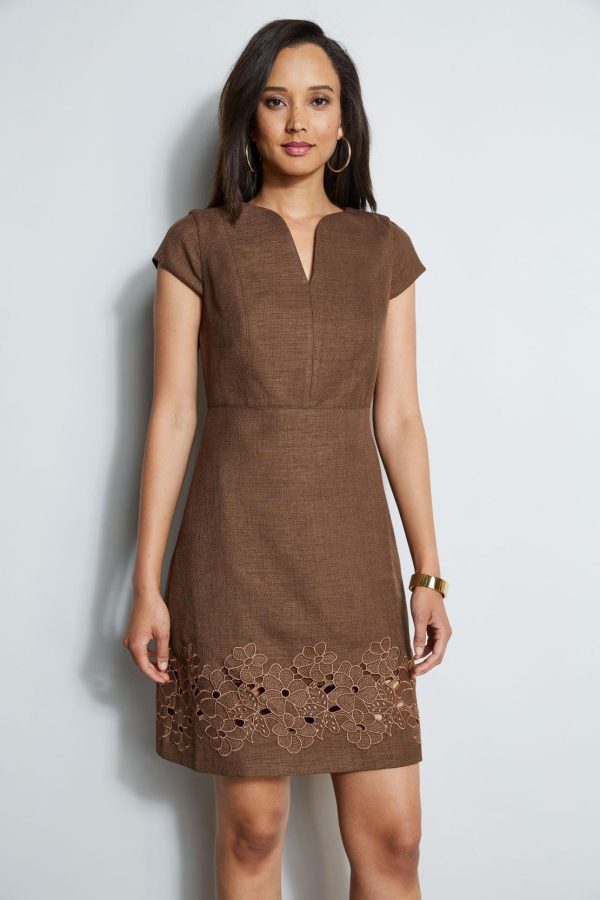 Women Short Sleeve Dresses | Elie Tahari Short Sleeve Embroidered Hem Dress Sumatra