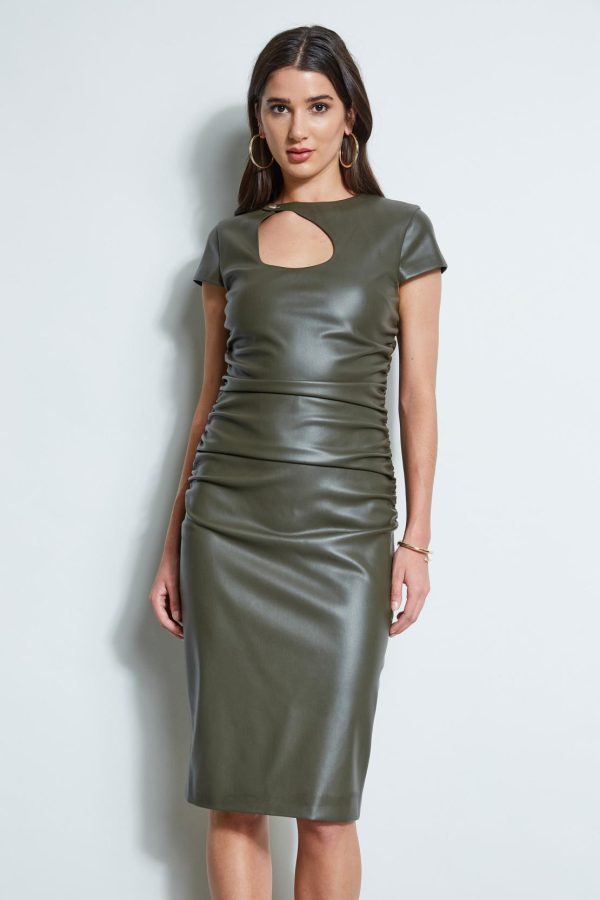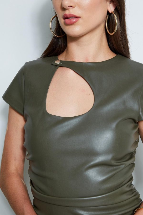 - Keyhole Metal Detail Vegan Leather Cap Sleeve Bodycon Dress