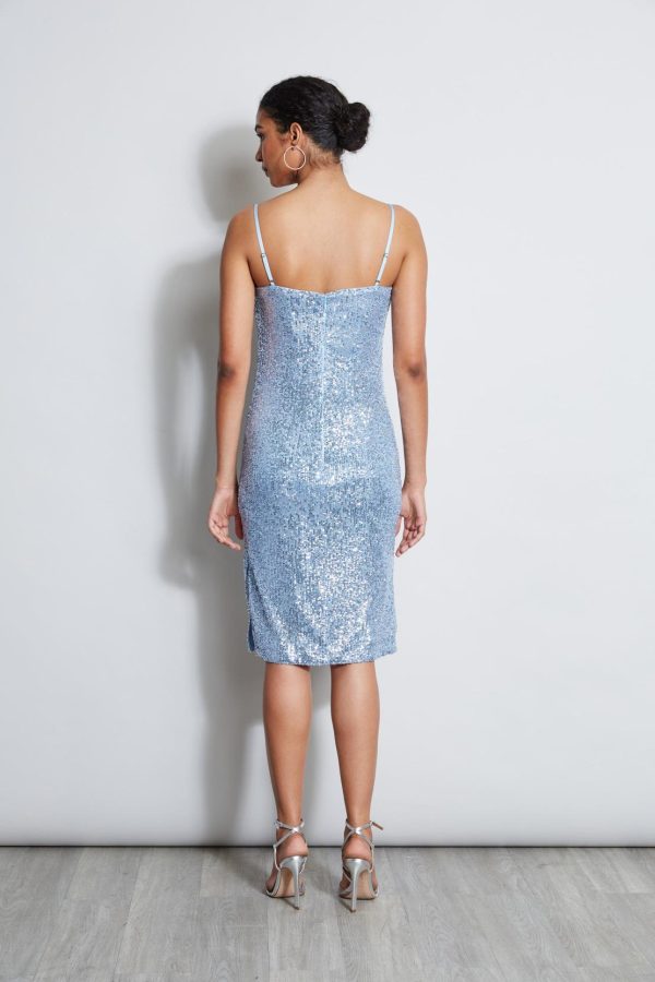 - Sleeveless Sequin Dress with Draped Cowl Neckline