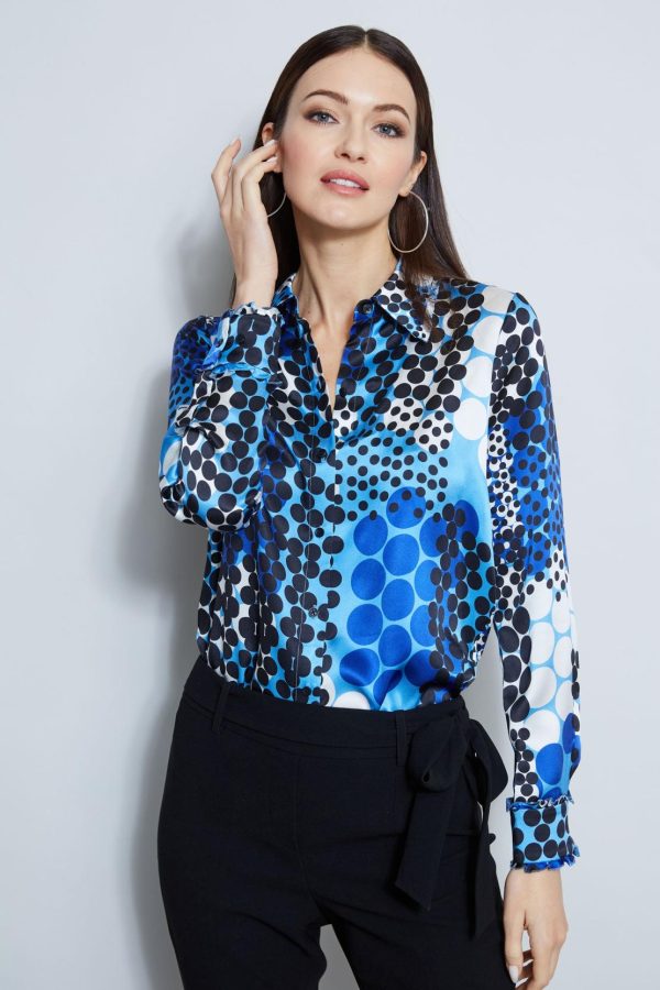 Women Suiting | Elie Tahari Silk Satin Hydro Dot Shirt Lapis Multi