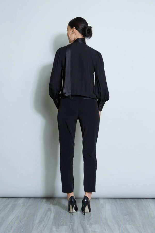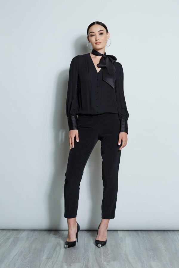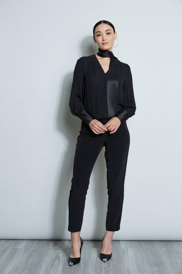 - Silk Georgette Long Sleeve Button Front V-Neck Shirt with pleated cuffs & Satin Neck Tie.