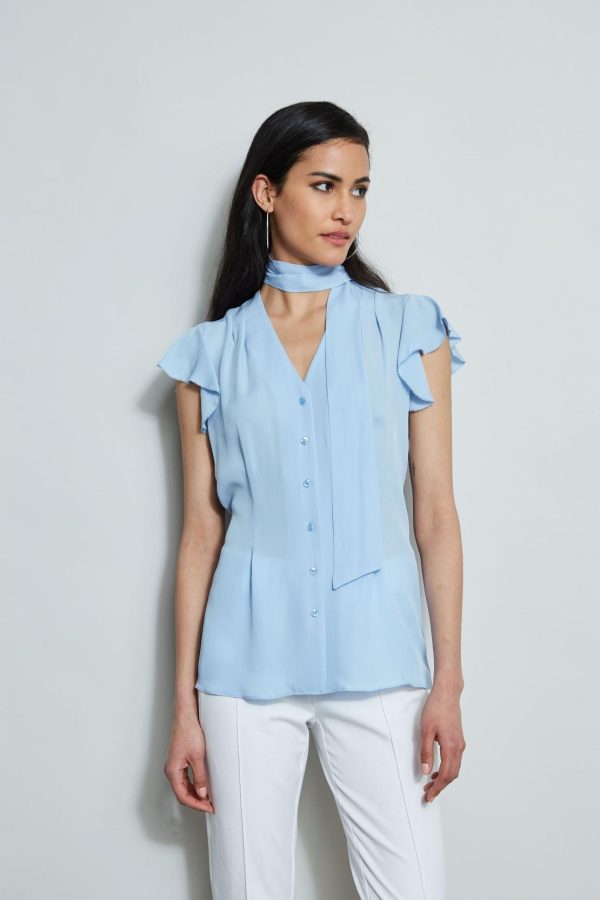 - Silk Georgette Short Ruffle Sleeve Shirt with Removable Neck Tie